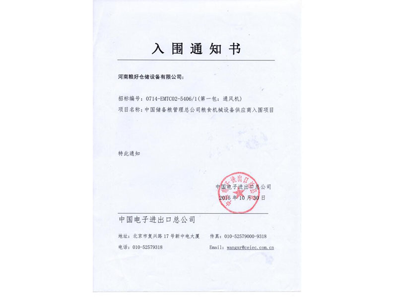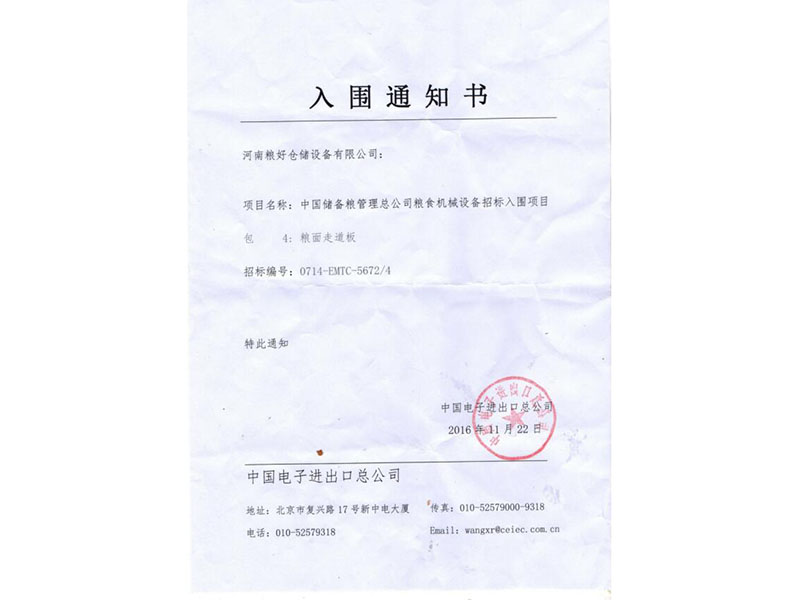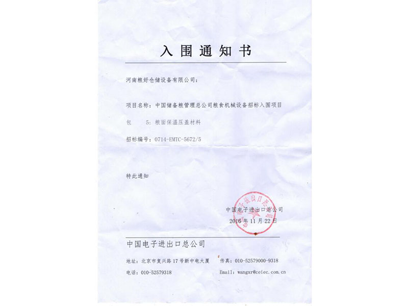 • 入圍通知書