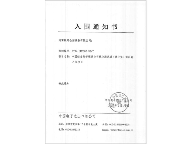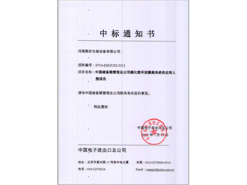 • 中標通知書